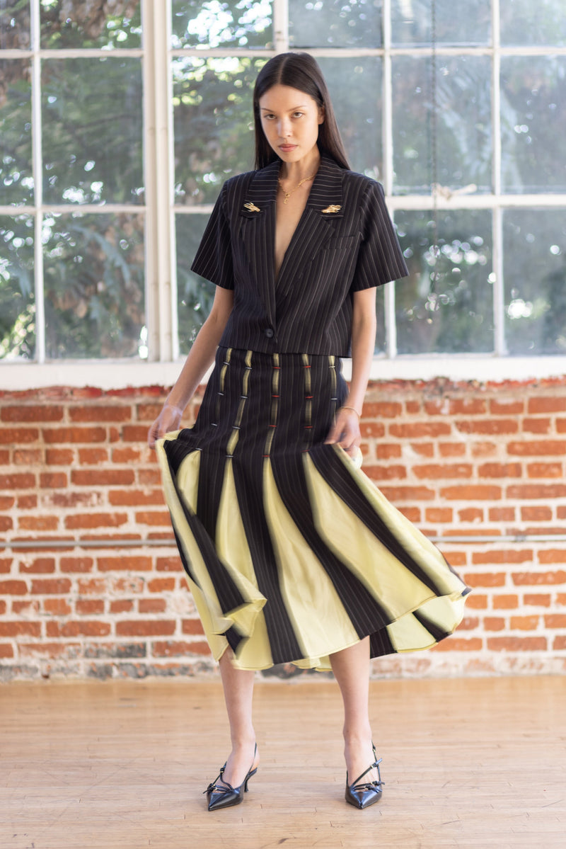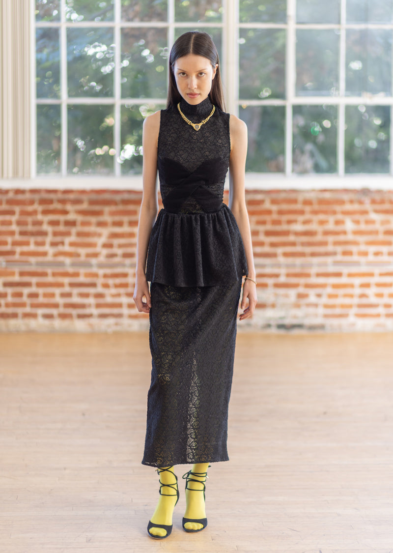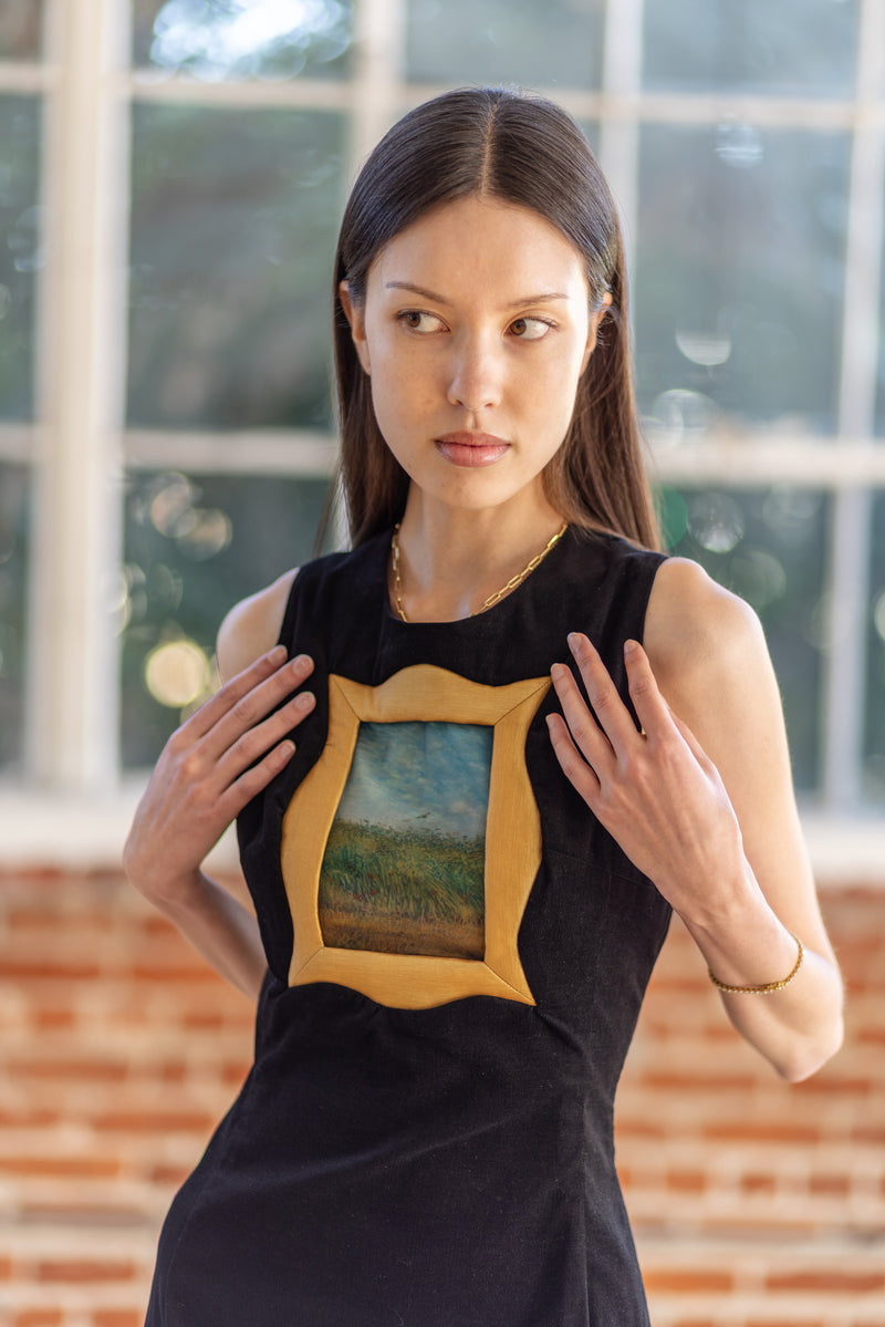 Mater Suspirium, meaning 'Our Lady of Sighs' in Latin is inspired by art's ability to transcend darkness. This collection features paintings by Vincent Van Gogh and Vasily Kadinsky. Quilted elements and moody colors evoke the depths of the human spirit