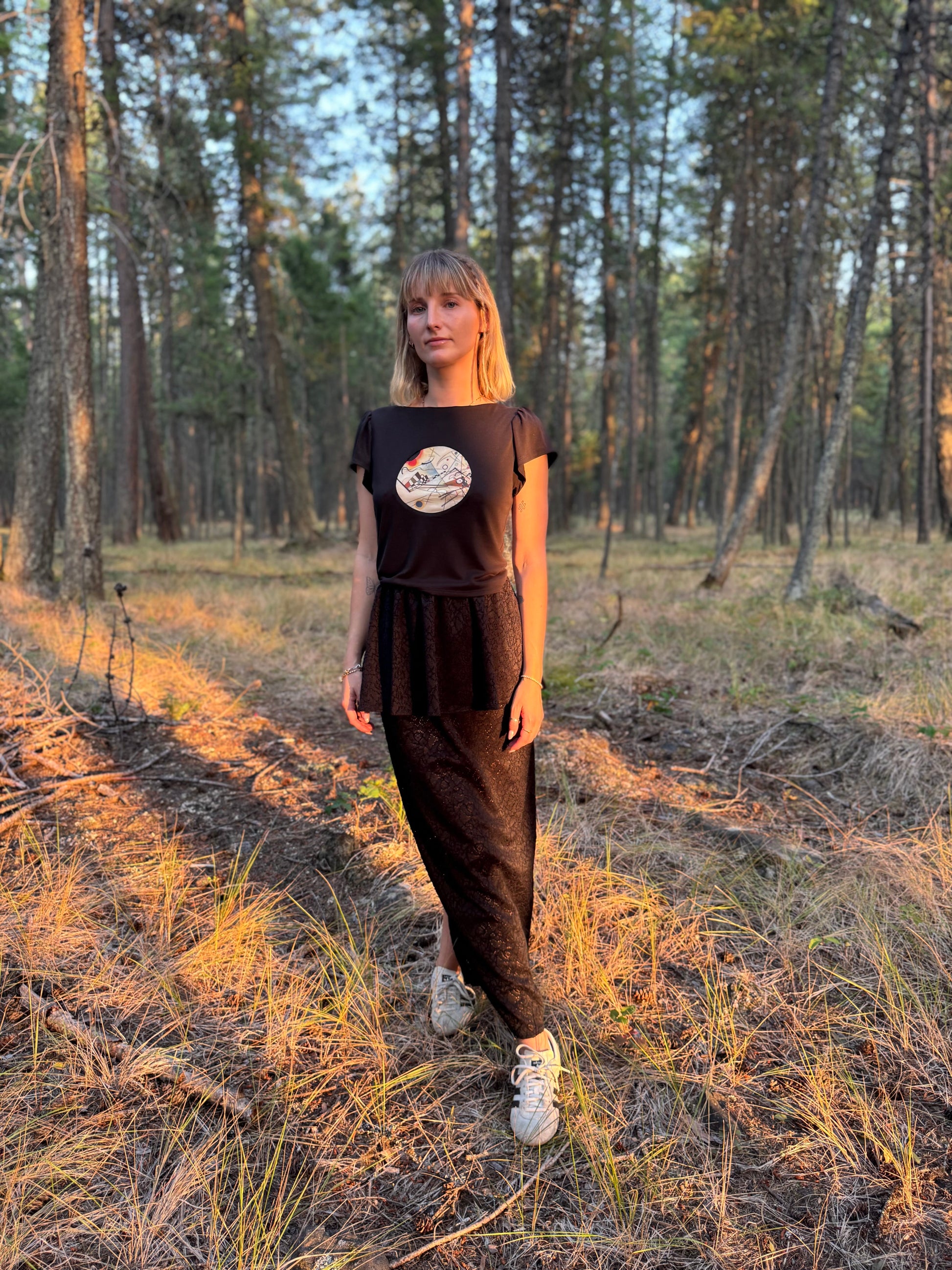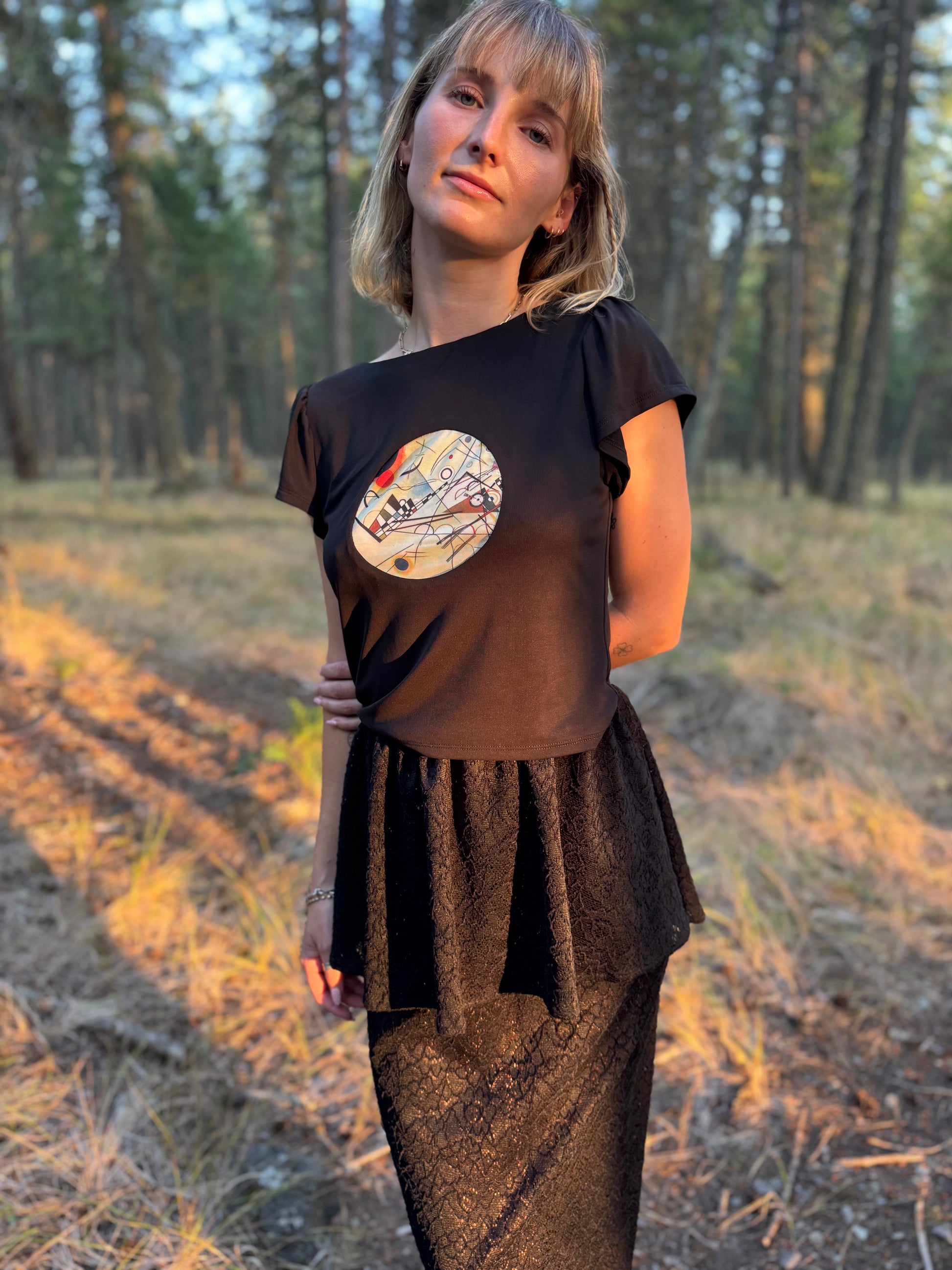 A slightly cropped top in a soft, eco-friendly modal knit. This shirt is double layered to provide a beautiful smoothing drape, and features a flattering ruffle sleeve.